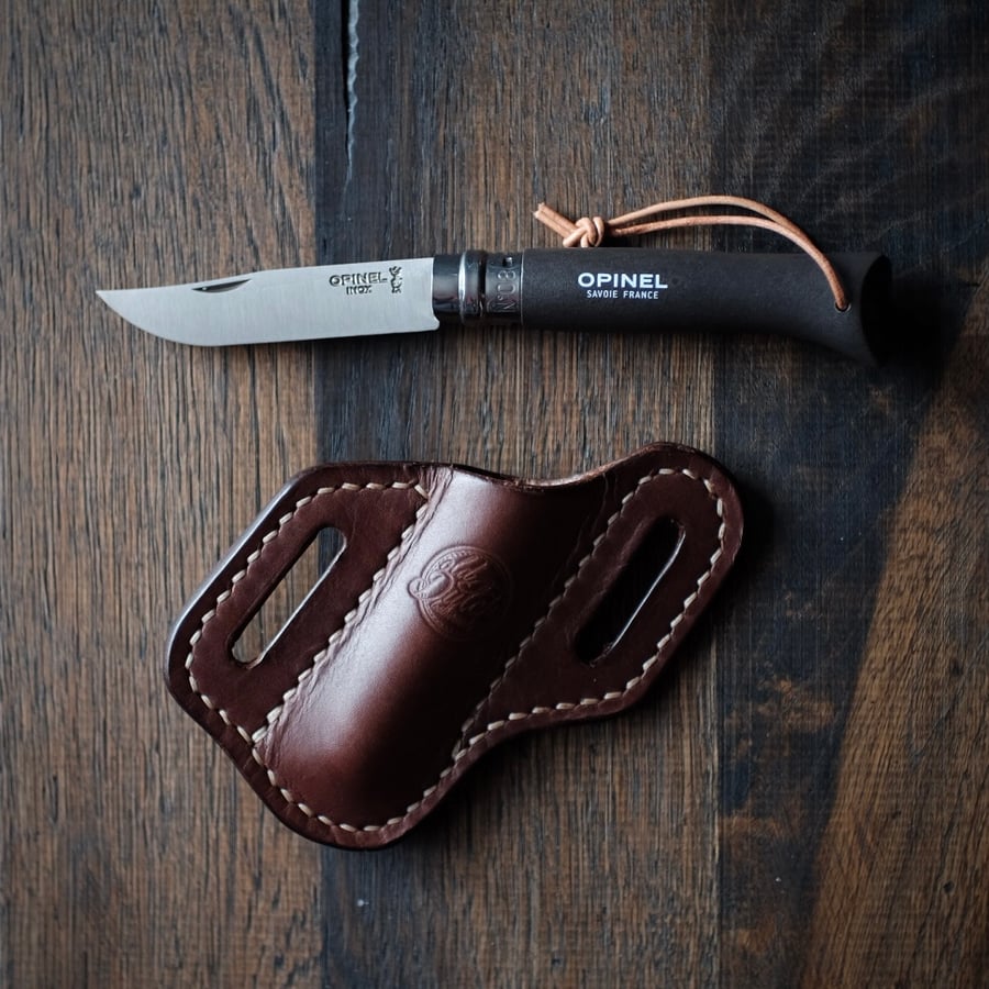 Cross draw sheath with Opinel #8 trekking (dark brown)